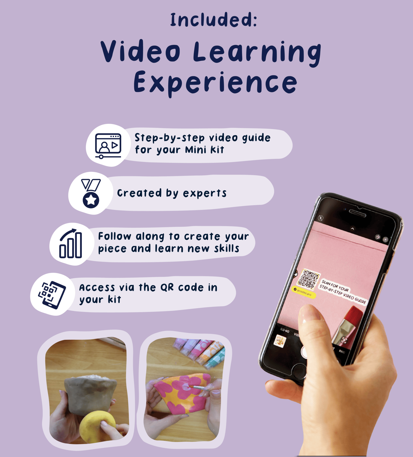 Scanne den QR-Code auf dem Aufkleber außen an deiner Projektbox, um auf deine Online-Videos zum Töpfern & Bemalen, hilfreiche Tipps und die Pflegeanleitung zuzugreifen – alles liebevoll zusammengestellt von unseren Kreativprofis.