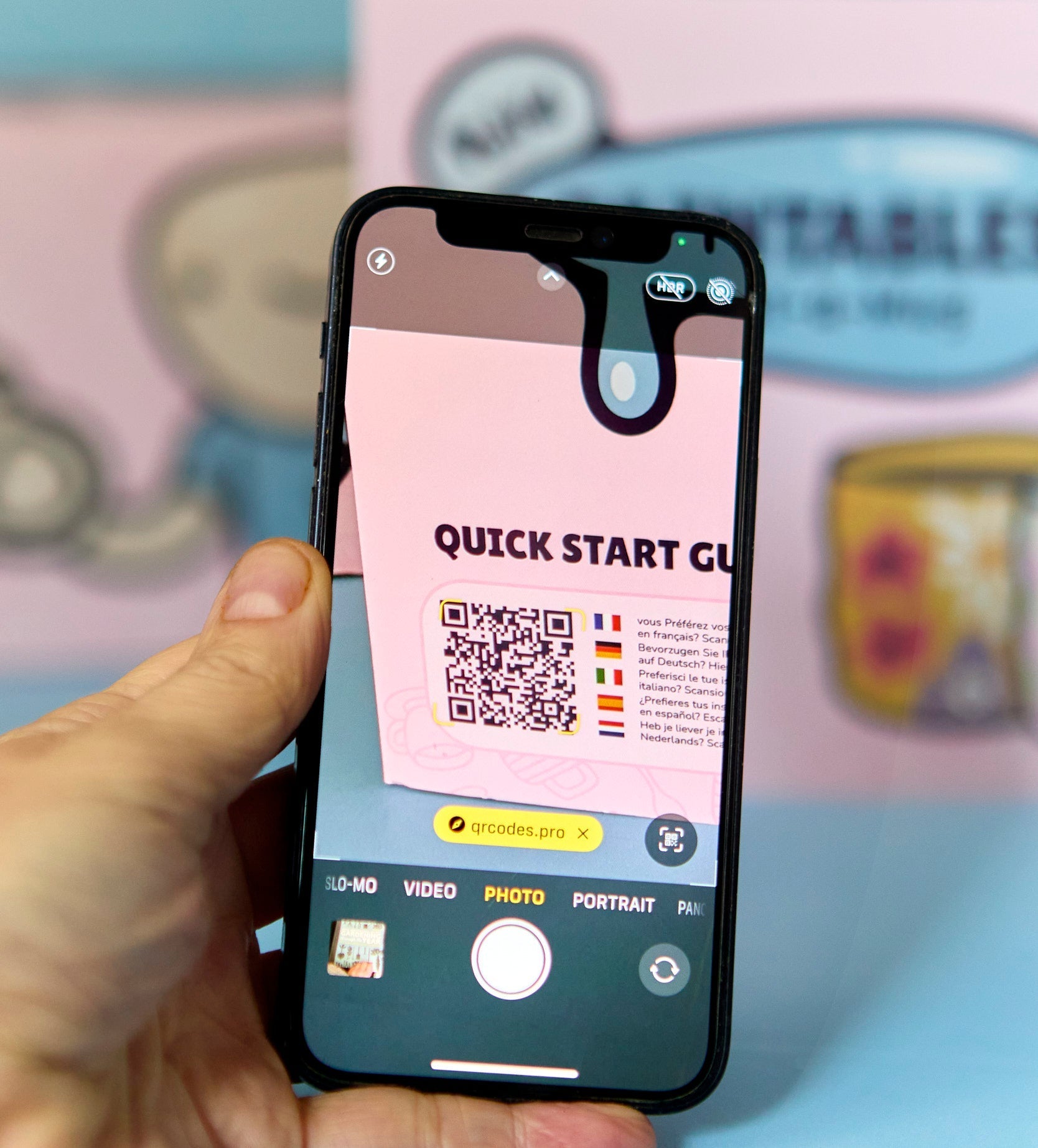 Scanne den QR-Code auf der Vorderseite deiner Anleitung, um auf deine Online-Videos zum Bemalen, hilfreiche Tipps und die Pflegeanleitung zuzugreifen – alles liebevoll zusammengestellt von unseren Kreativprofis.