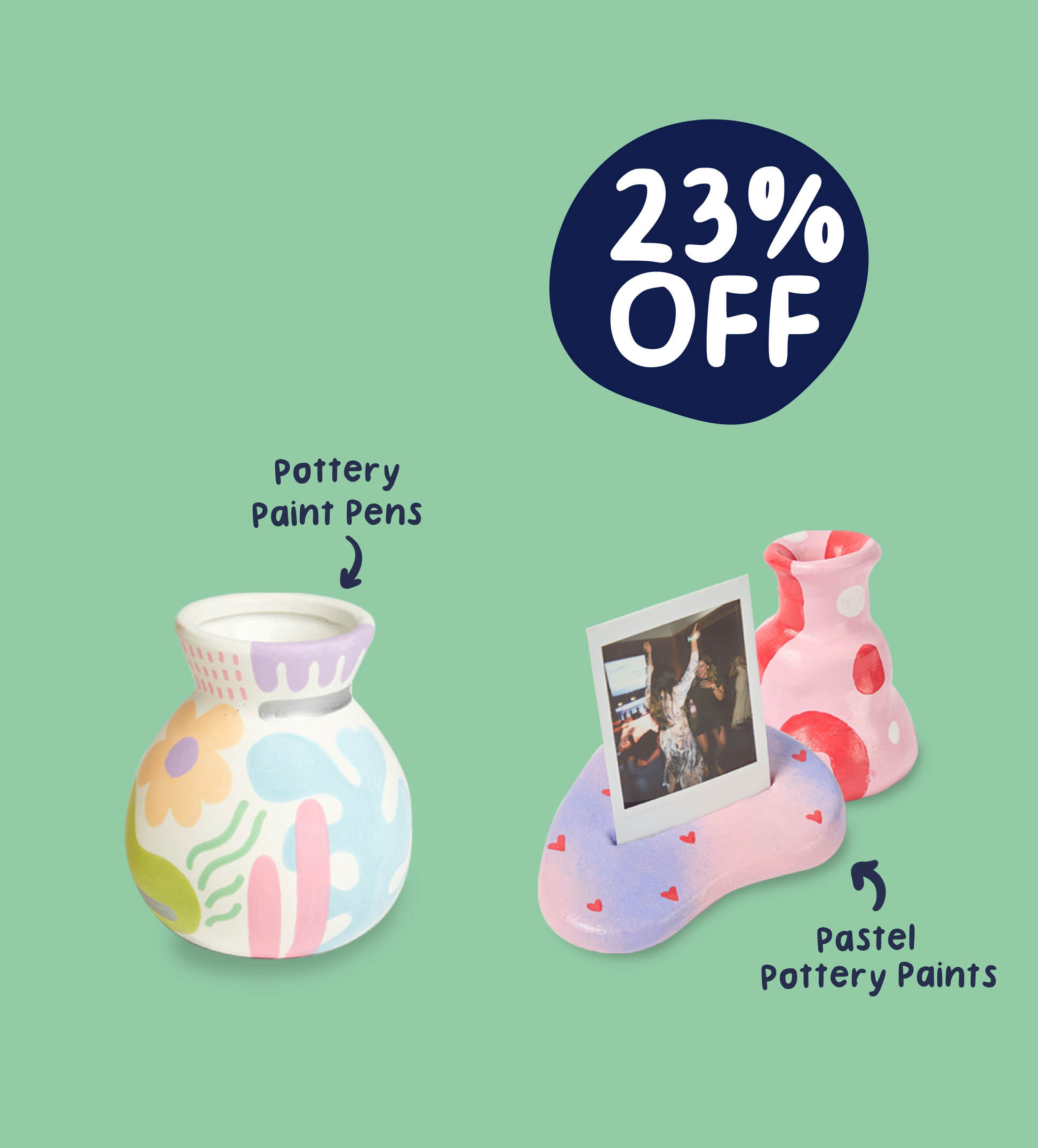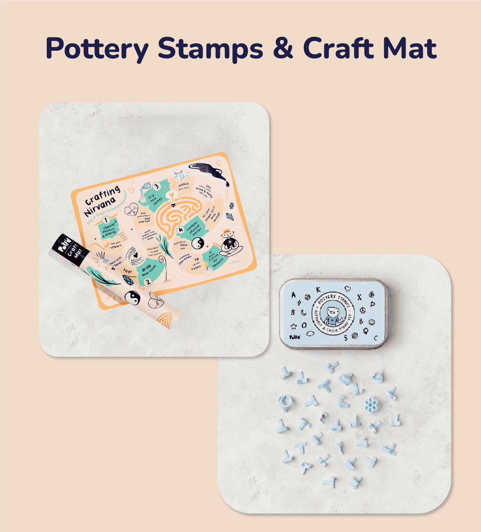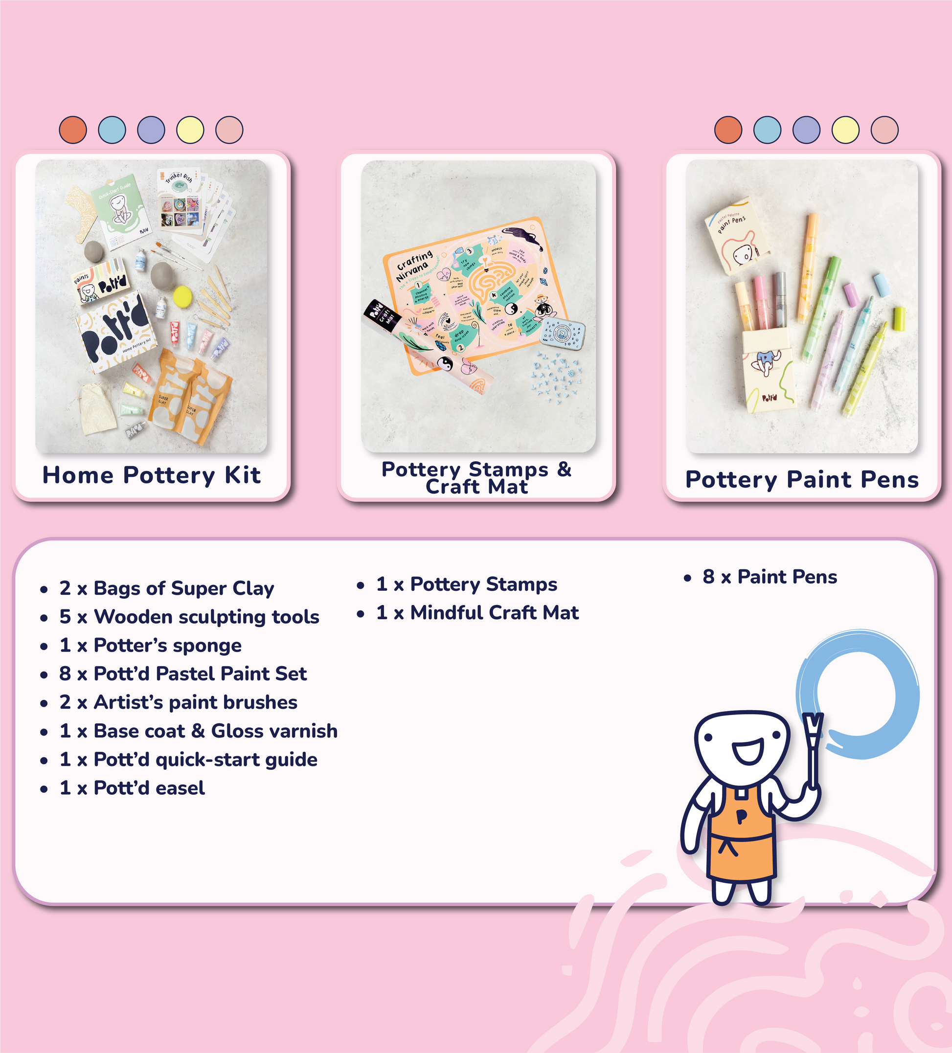Dieses Paket enthält alles, was du brauchst, um von Anfang an wunderschöne, einzigartige Stücke zu kreieren. Mit unserem Töpferset für zu Hause (einschließlich Pastellfarben), den Töpferstempel und der Arbeitsmatte hat dieses Paket alles, was du brauchst, um loszulegen, und ist damit das perfekte kreative Geschenk.