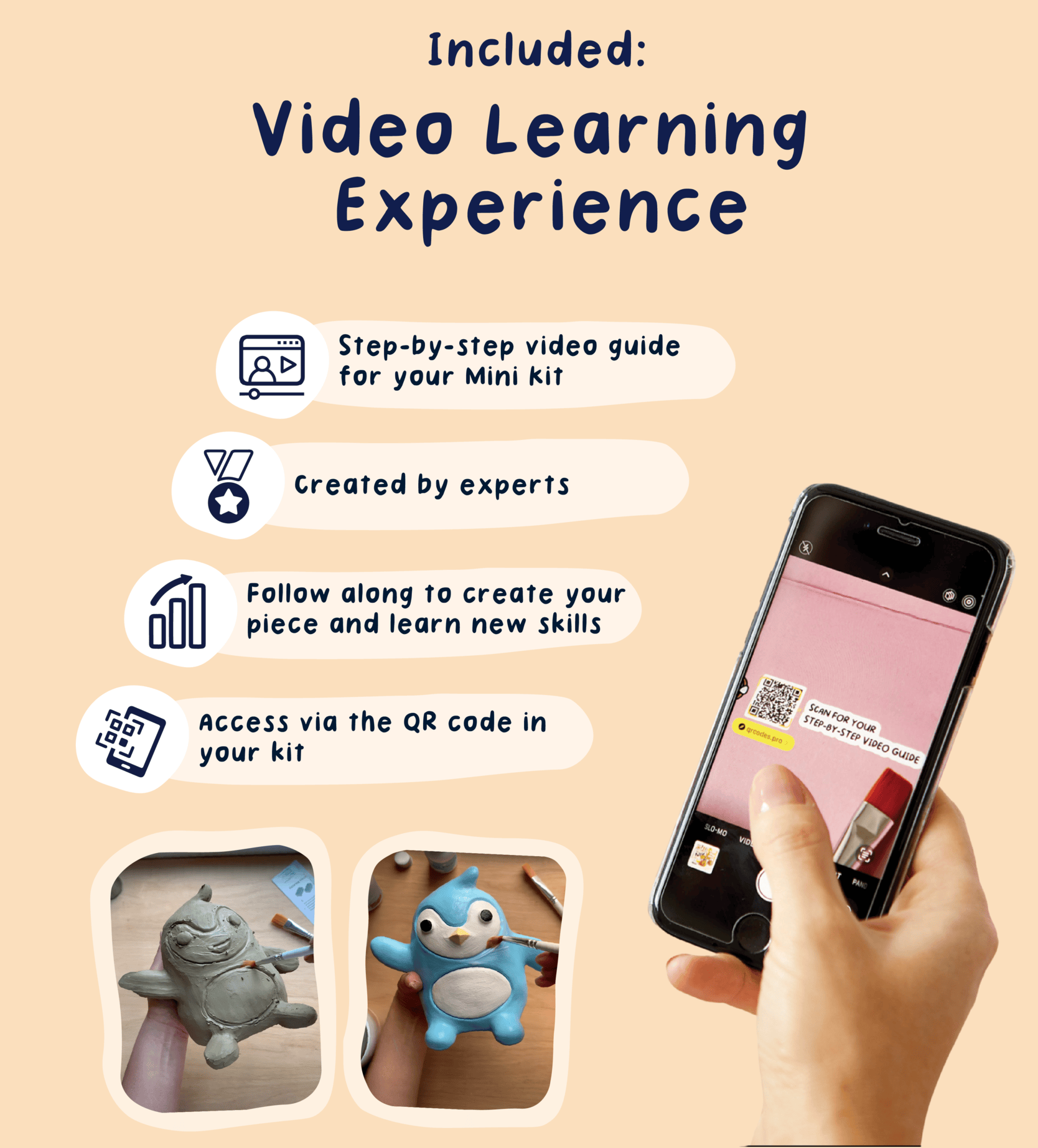 Scan the QR code on the sticker outside of your project box to access your online clay sculpting & painting video tutorials, helpful tips and care guide - all thoughtfully curated by our creative experts.