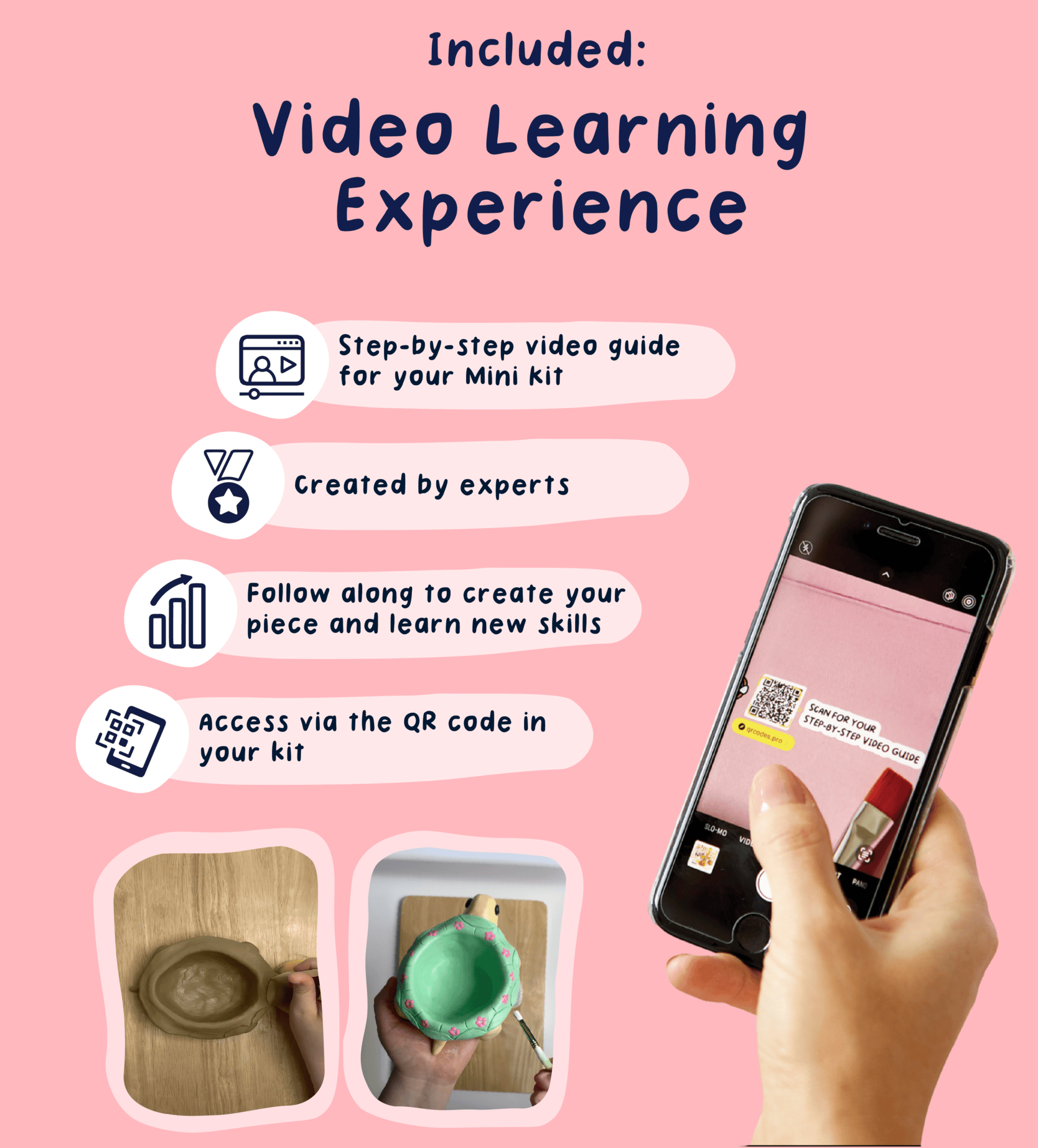 Scan the QR code on the sticker outside of your project box to access your online clay sculpting & painting video tutorials, helpful tips and care guide - all thoughtfully curated by our creative experts.