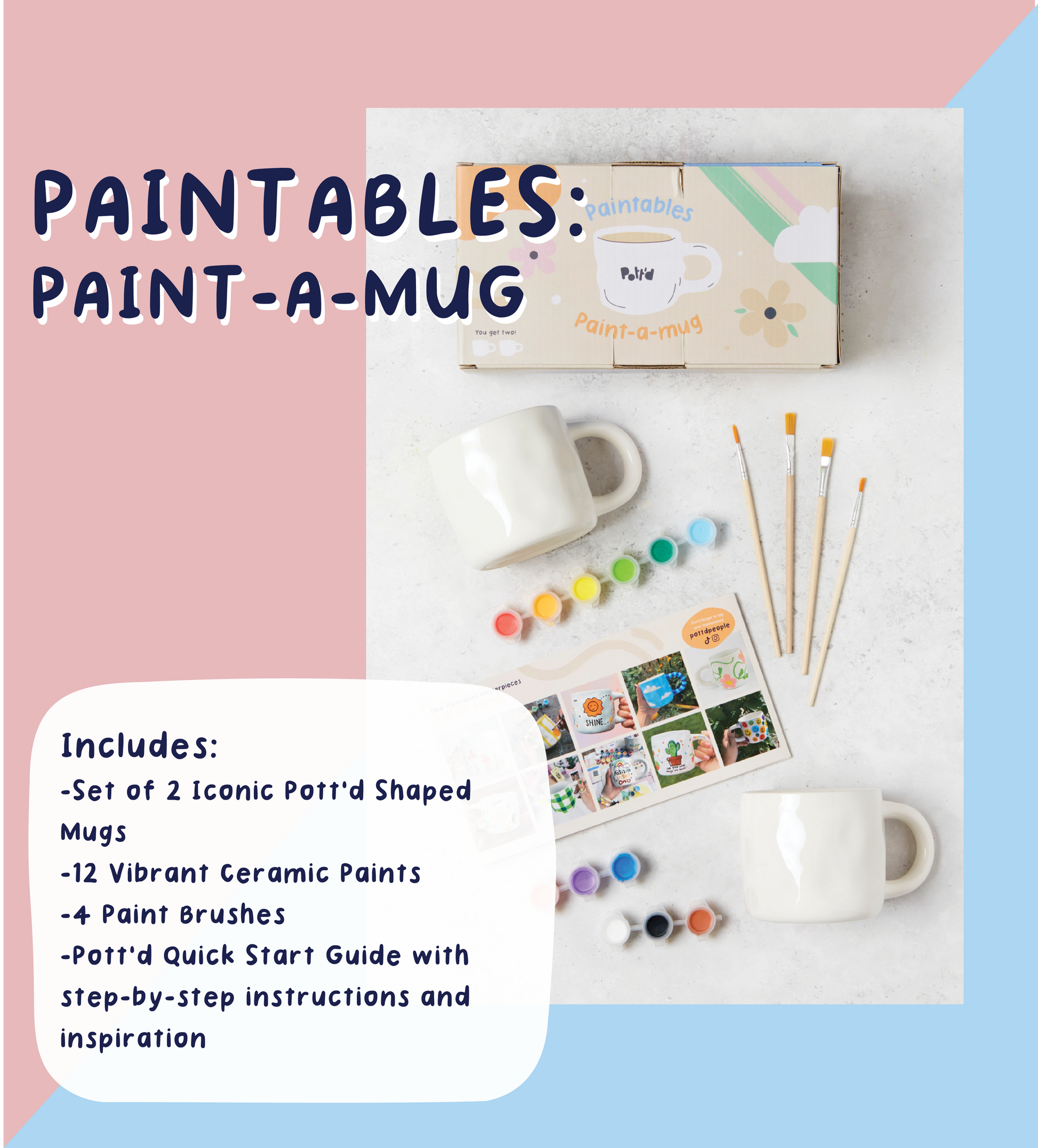 ☕ Paint-a-Mug Kit: Personalise 2 Custom-Shaped Mugs, designed with a comfortable handle and just the right size for your favourite drink.