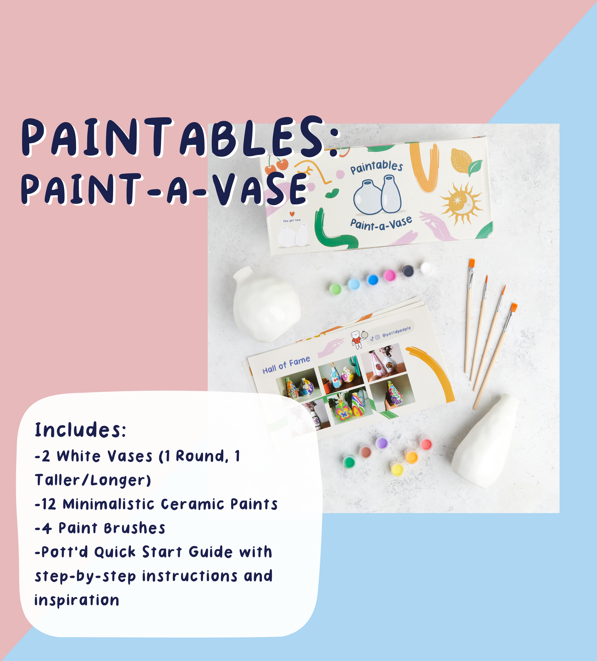 🏺 Paint-a-Vase Kit: Customise 2 White Vases (1 Round & 1 Tall) to display your floral creations or add a handmade touch to your décor.