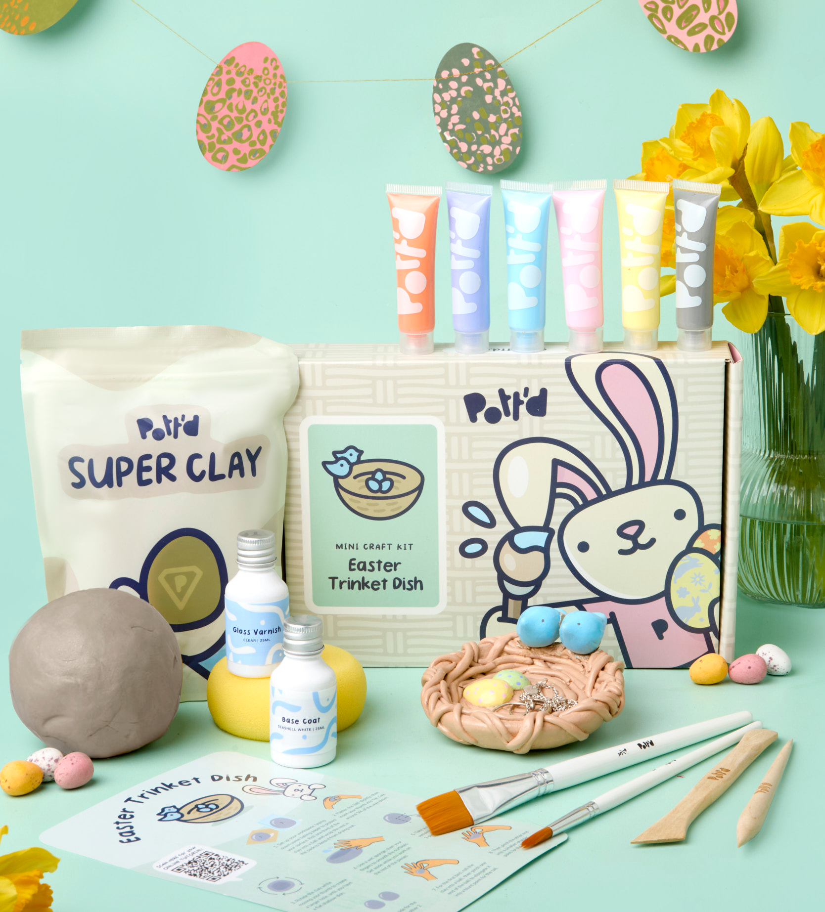 Create a sweet little place to keep your Easter treats and treasures with the Easter Nest Trinket Dish Kit. This hands-on project lets you shape your own nest-inspired trinket dish using easy-to-use air dry clay, then paint and finish it in soft, seasonal colours for a piece that’s both decorative and practical.