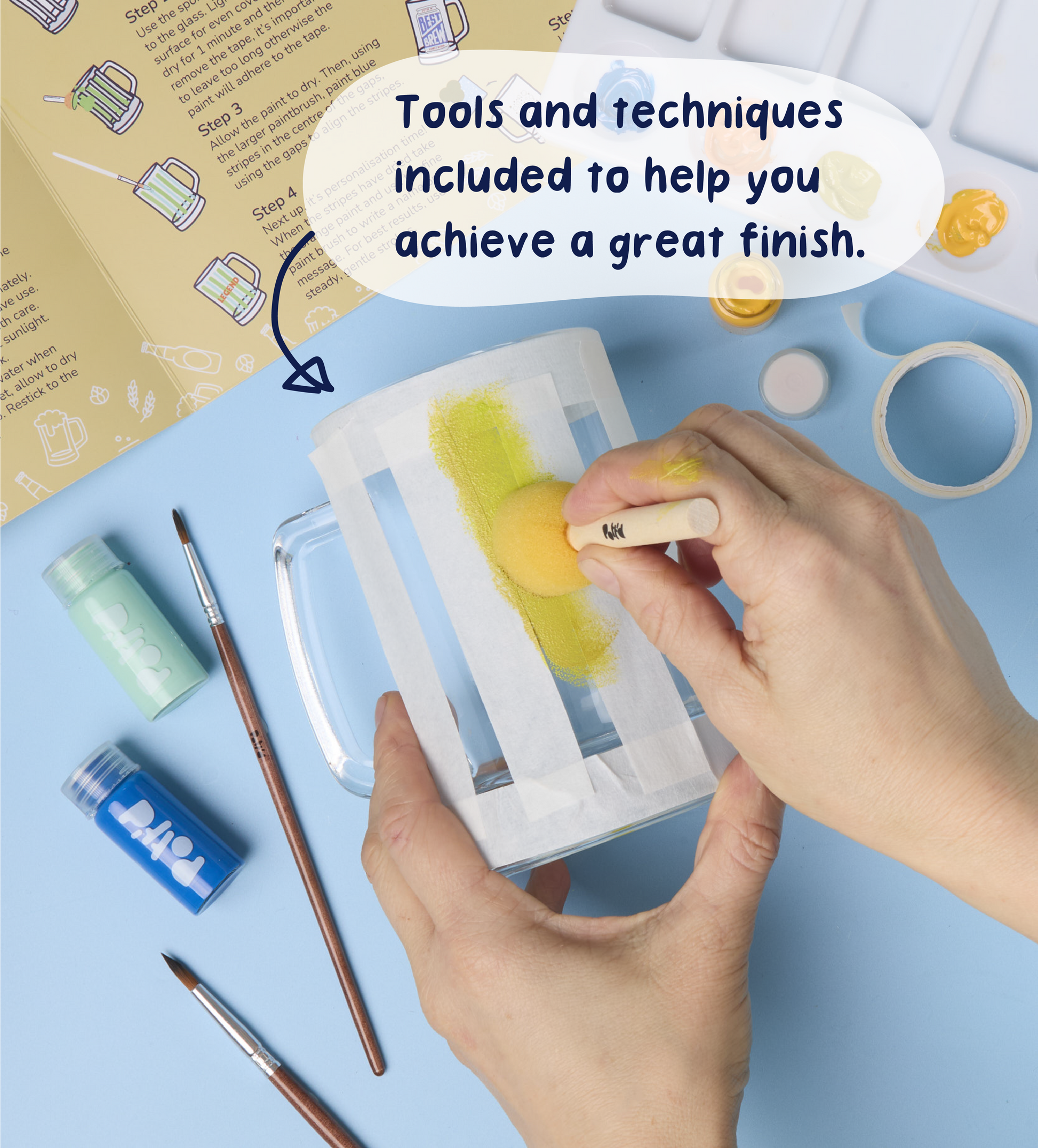 With easy-to-use glass paints, stencils and precision brushes, you can create everything from bold designs to fine details. Keep it simple or go all out, then cure your design for a durable finish that’s ready to raise a glass to. It’s a fun, relaxed way to get creative and turn an everyday essential into something personal.