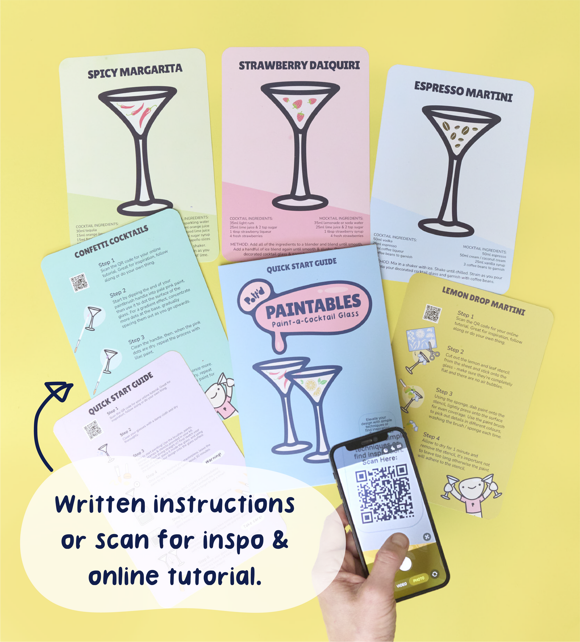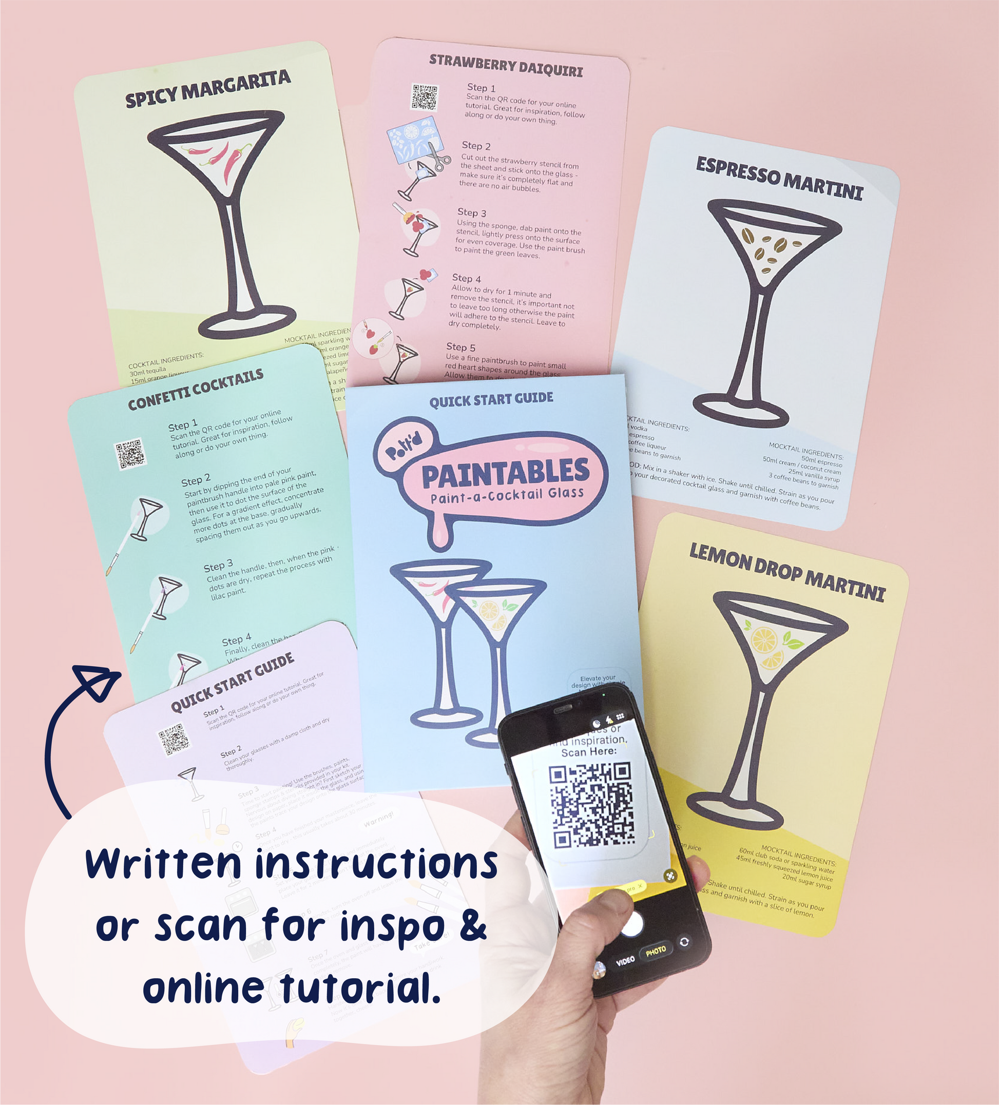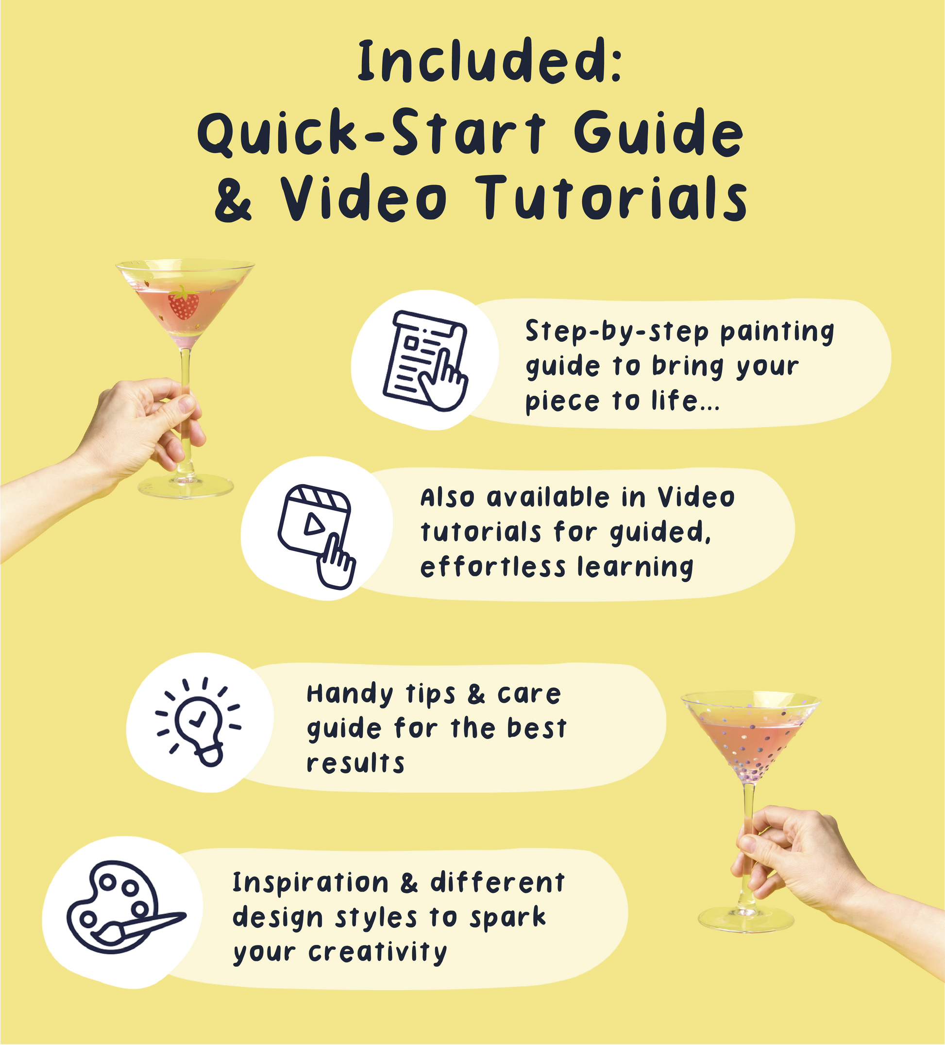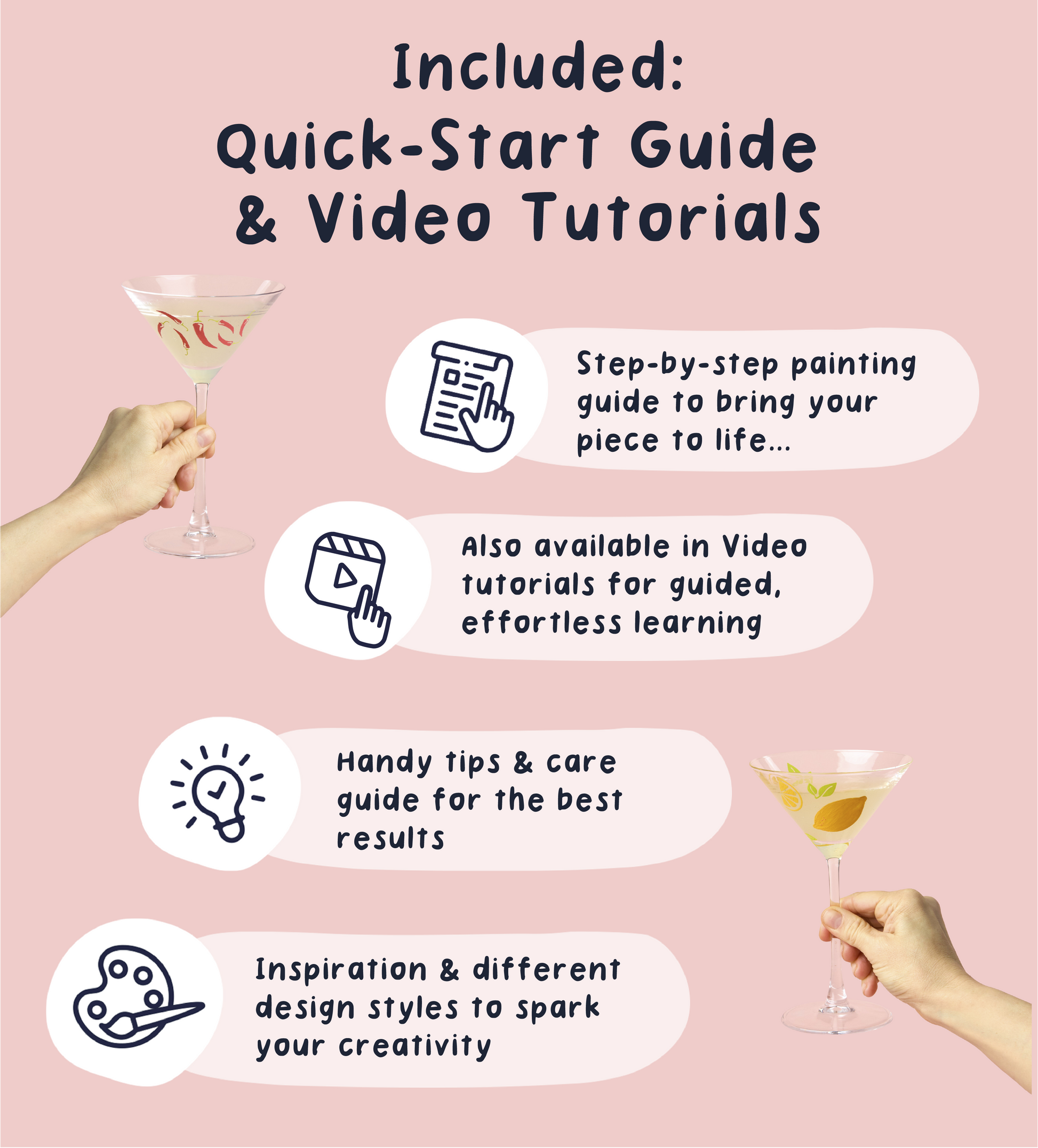 With easy-to-use glass paints, stencils and precision brushes, you can create everything from clean, minimal designs to bold, playful patterns. Follow the recipe cards for your next drink inspiration, then cure your design for a durable finish that’s ready for your next pour.