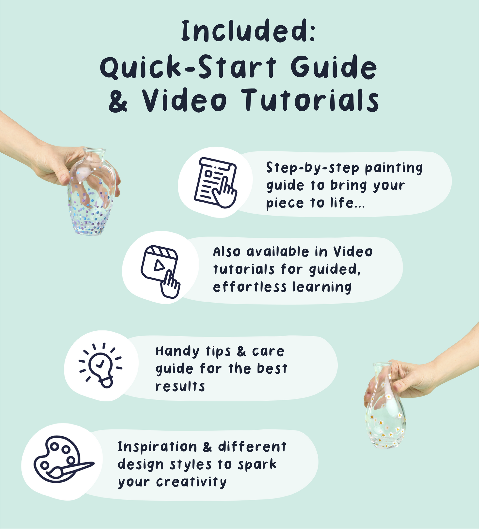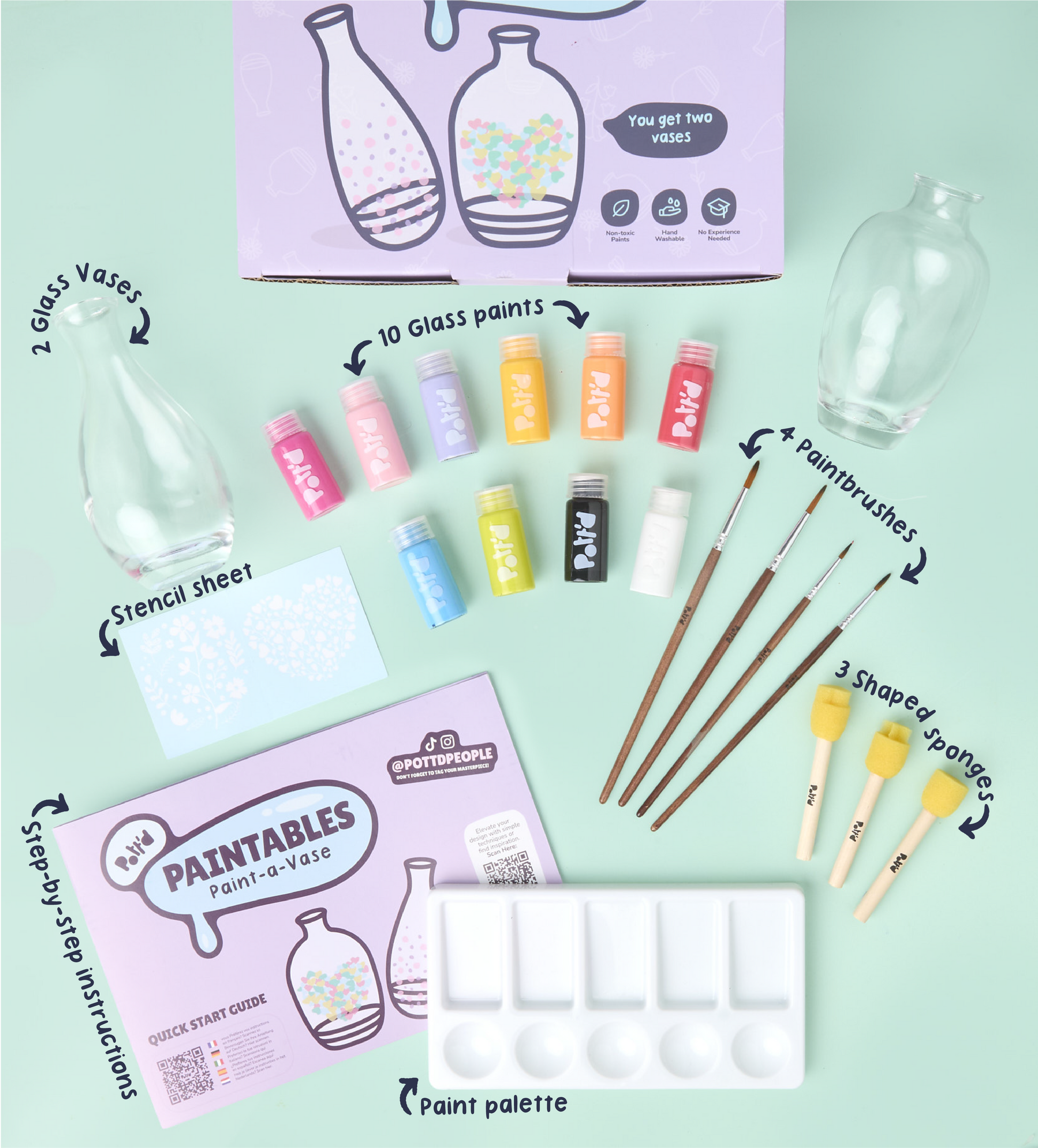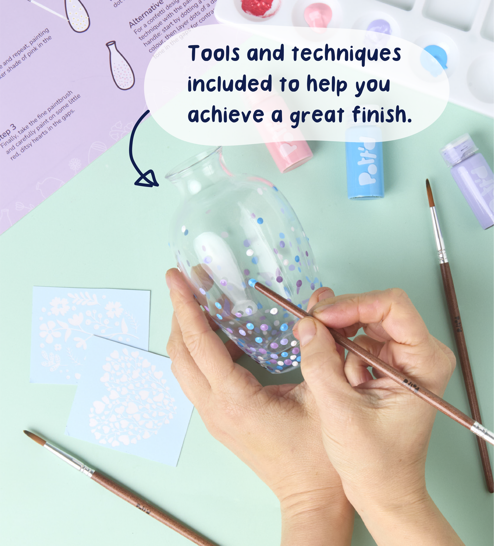 With easy-to-use glass paints, stencils and precision brushes, you can create everything from soft, minimal designs to bold, playful patterns. Use the shaped sponges to add texture and fun details, or keep things simple with clean lines and colour. Once cured, your design transforms into a durable finish, ready to hold your favourite blooms.