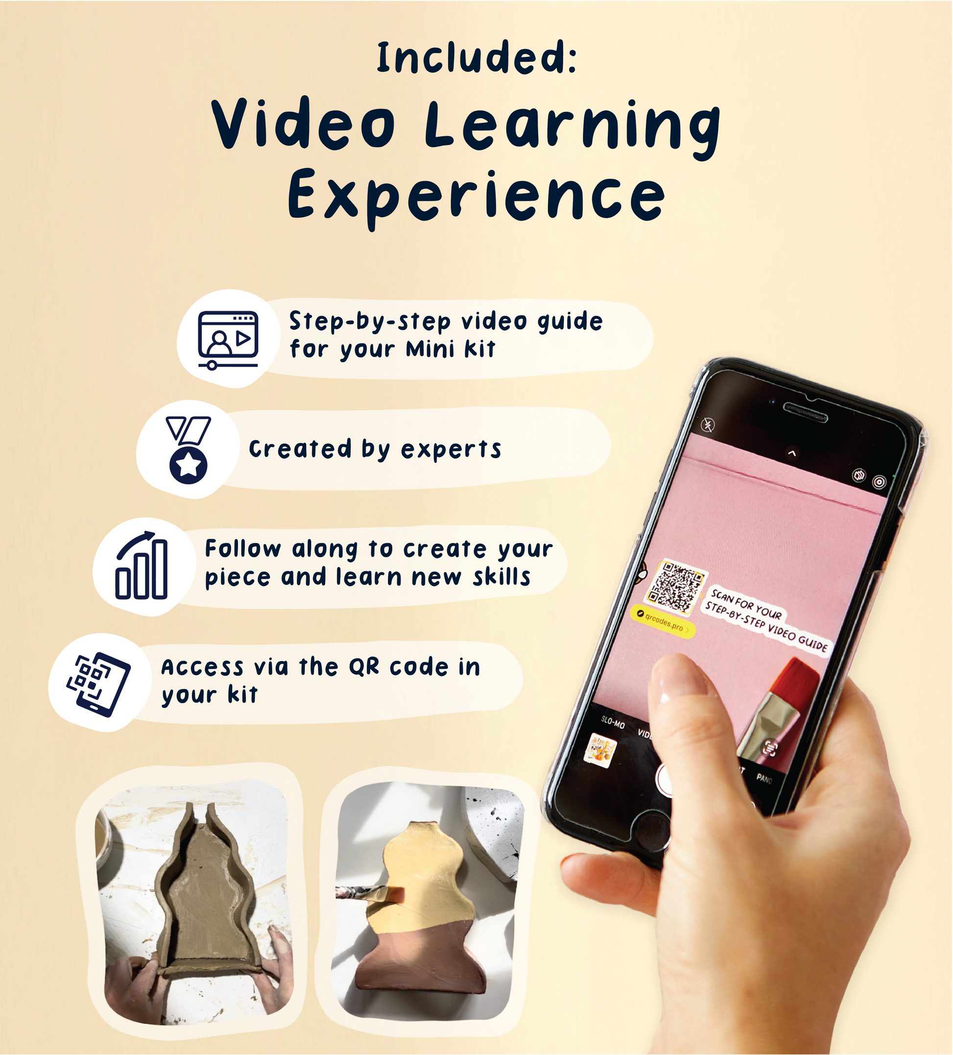 Scan the QR code on the sticker outside of your project box to access your online clay sculpting & painting video tutorials, helpful tips and care guide - all thoughtfully curated by our creative experts.