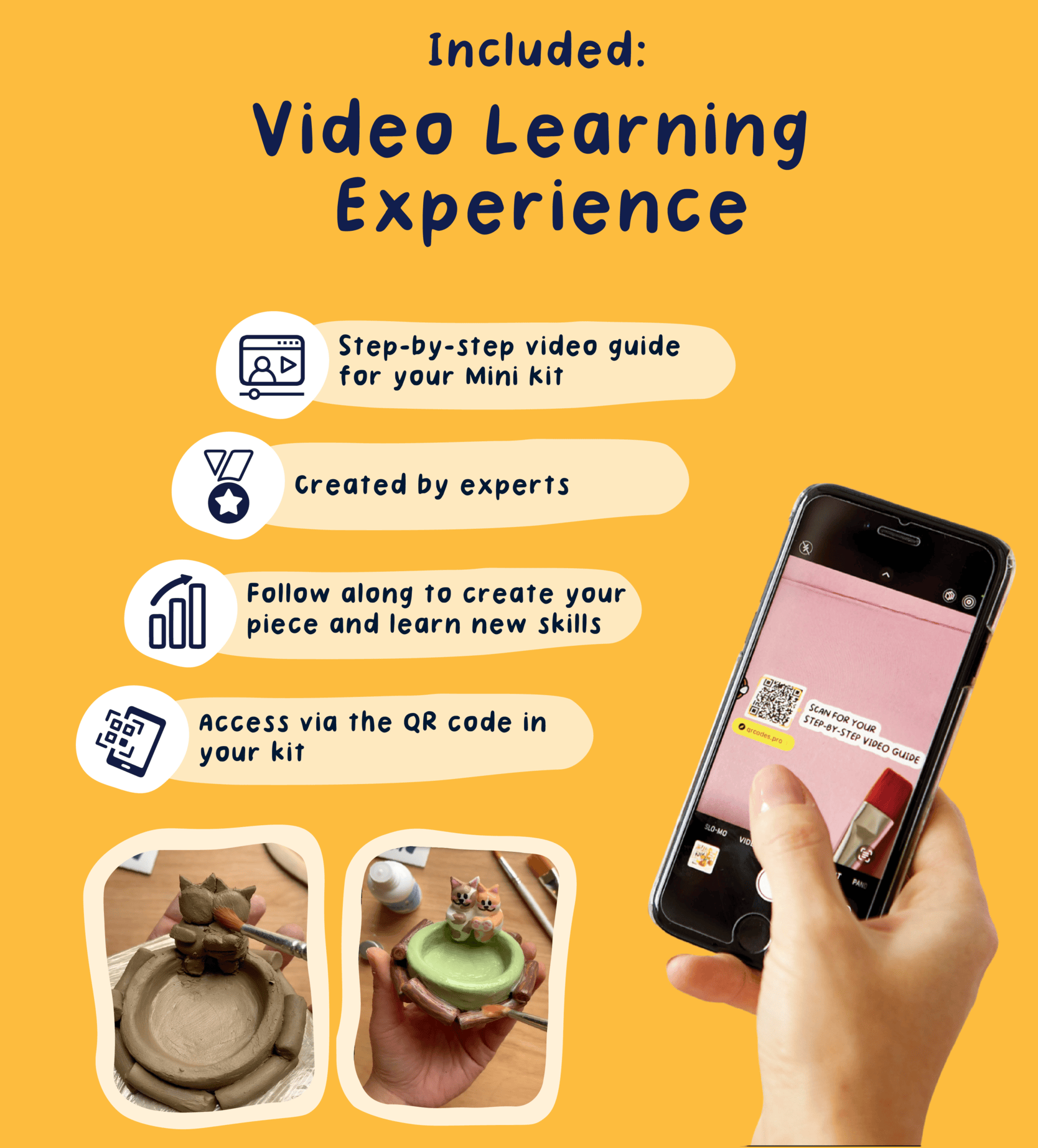 Scan the QR code on the sticker outside of your project box to access your online clay sculpting & painting video tutorials, helpful tips and care guide - all thoughtfully curated by our creative experts.