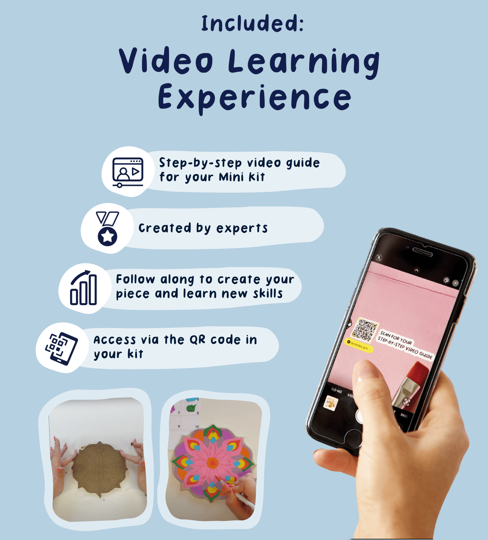 Scan the QR code on the sticker outside of your project box to access your online clay sculpting & painting video tutorials, helpful tips and care guide - all thoughtfully curated by our creative experts.