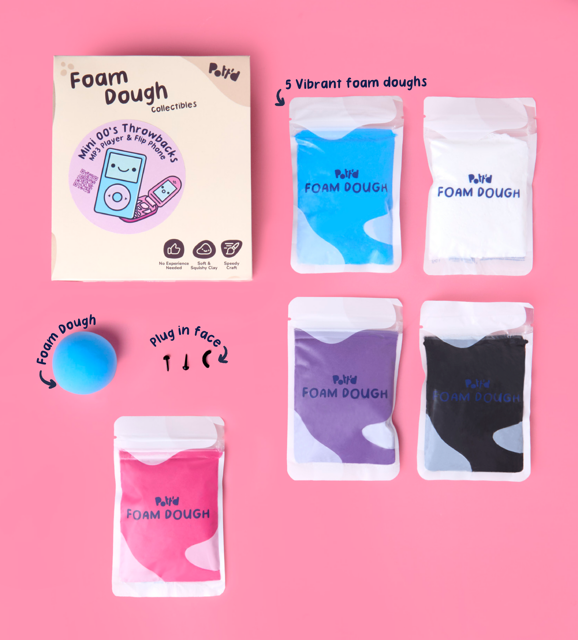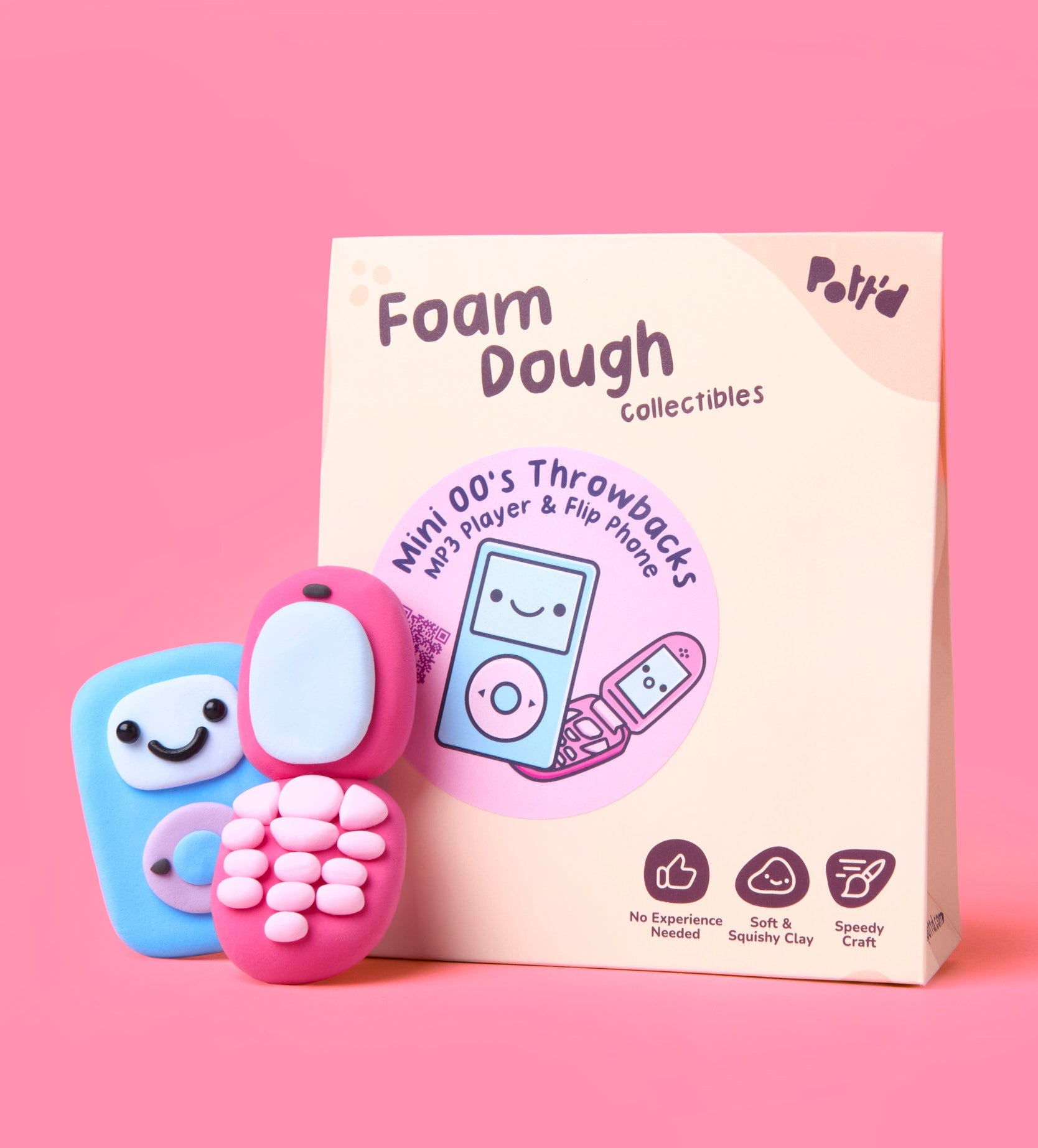 Relive the early days of playlists and text tones with Mini 00's Throwbacks, a nostalgic make from our Foam Dough Collectibles range. This mini kit lets you craft an mp3 player and a flip phone, celebrating the tech that defined a generation.