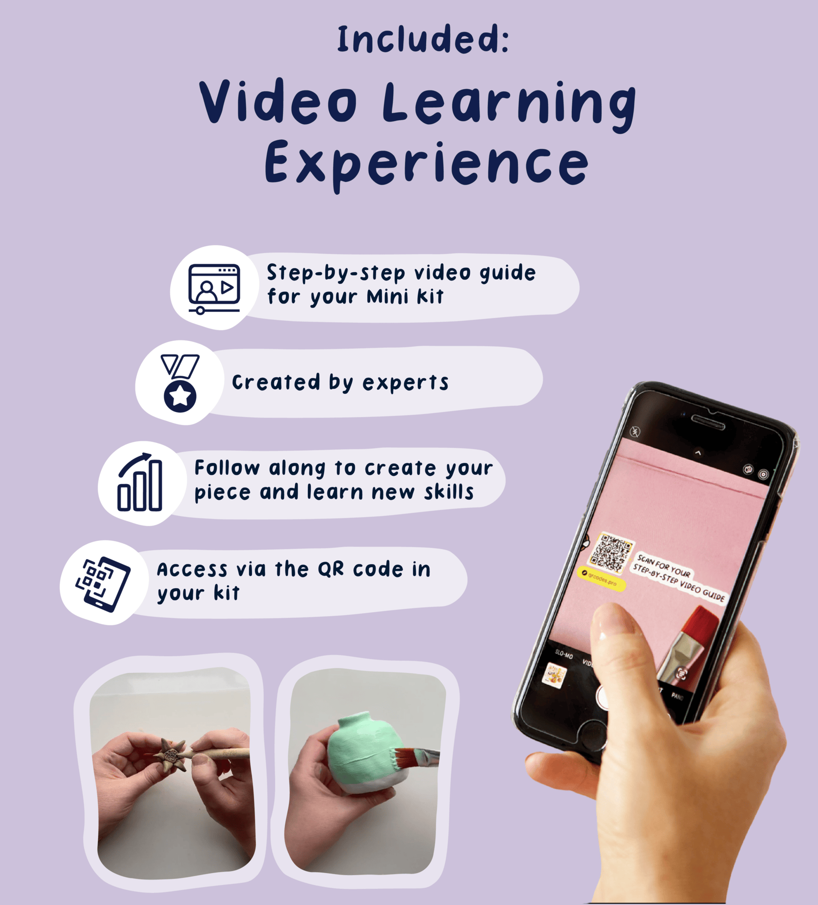 Scan the QR code on the sticker outside of your project box to access your online clay sculpting & painting video tutorials, helpful tips and care guide - all thoughtfully curated by our creative experts.