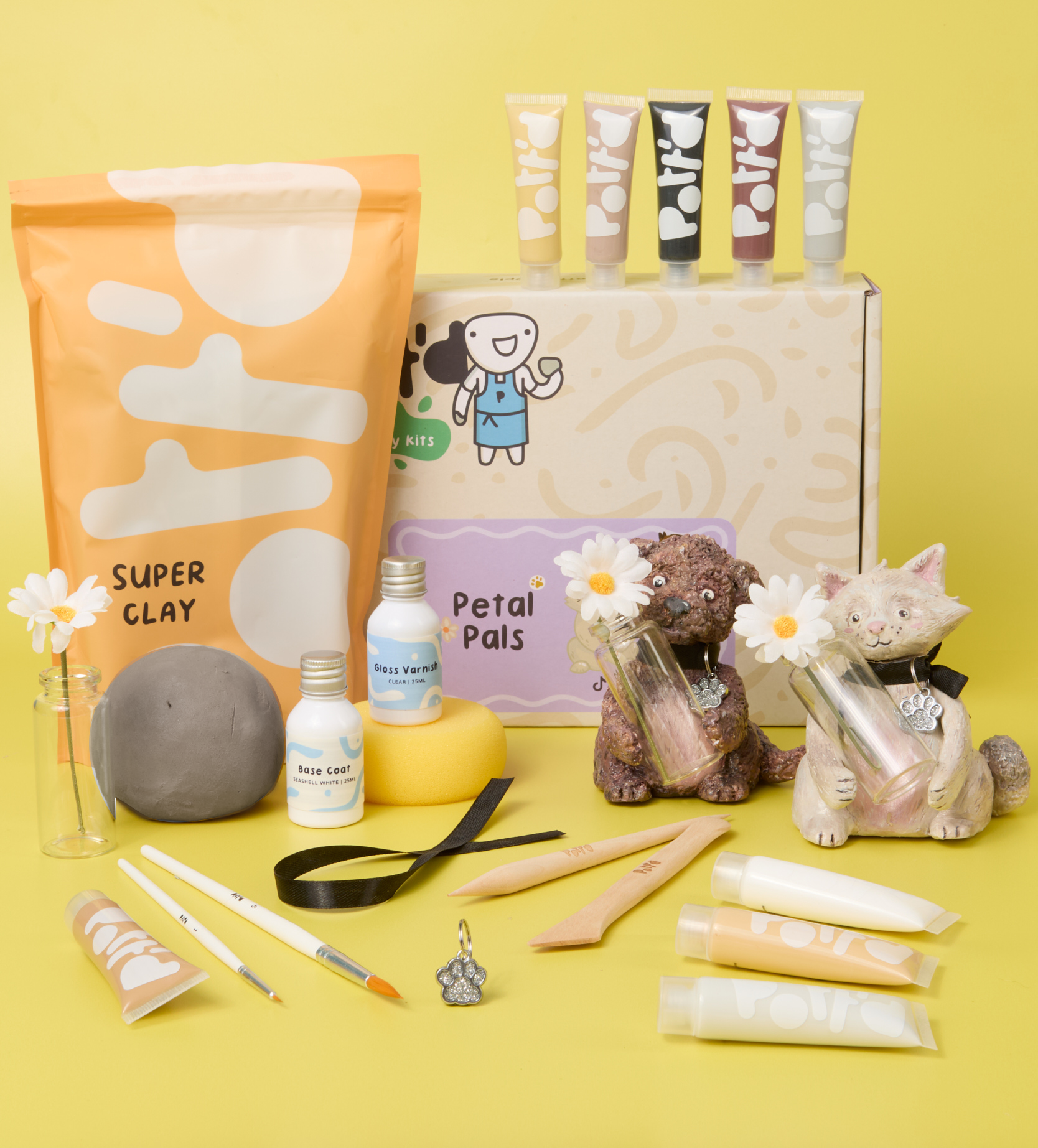 Meet your new handmade best friend with the Petal Pals. This adorable air-dry clay set lets you sculpt and paint a charming cat or dog, customising it to look just like your own pet. Whether you shape floppy ears, a fluffy tail, or unique markings, your creation will be one-of-a-kind.