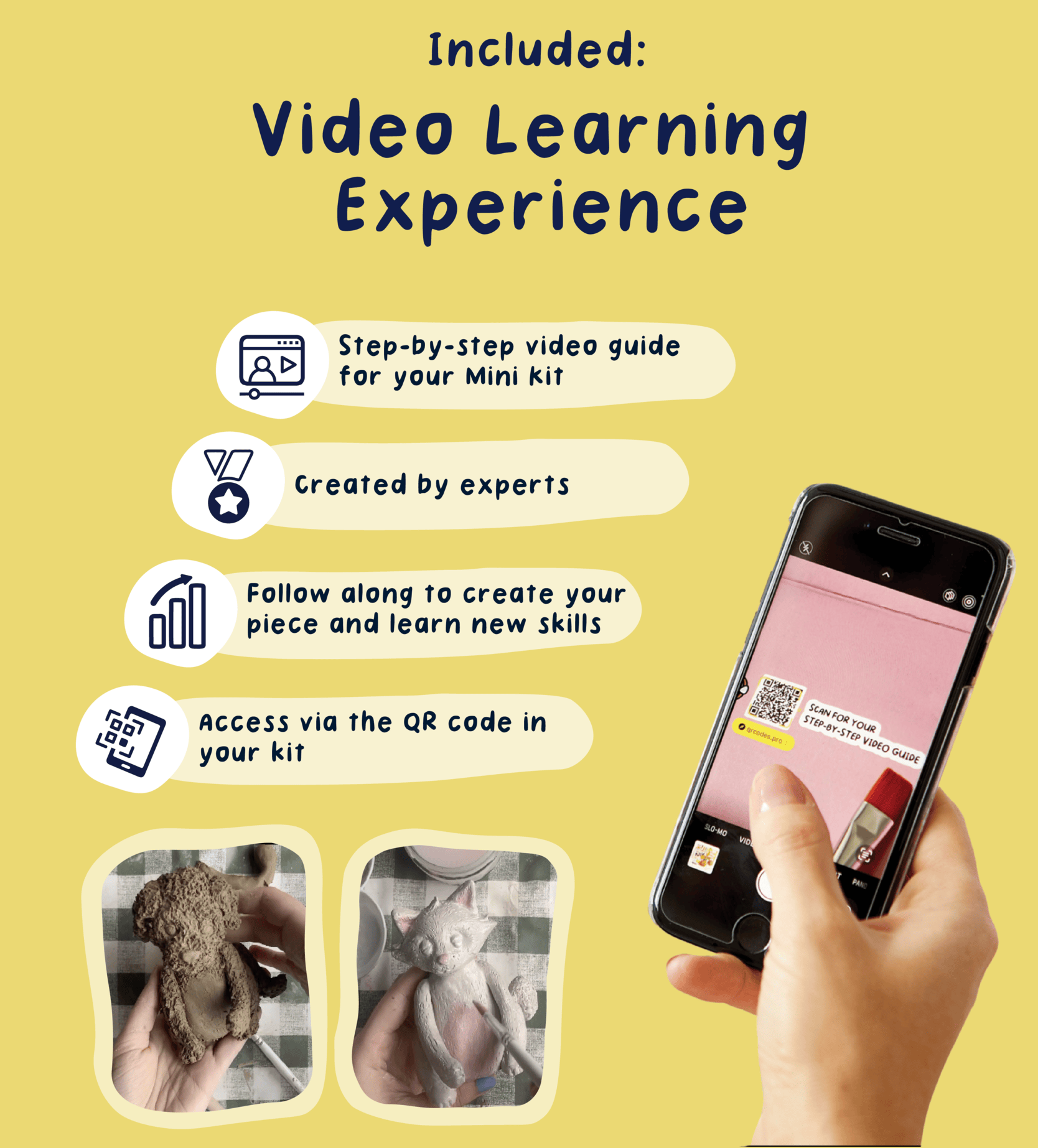 Scan the QR code on the sticker outside of your project box to access your online clay sculpting & painting video tutorials, helpful tips and care guide - all thoughtfully curated by our creative experts.