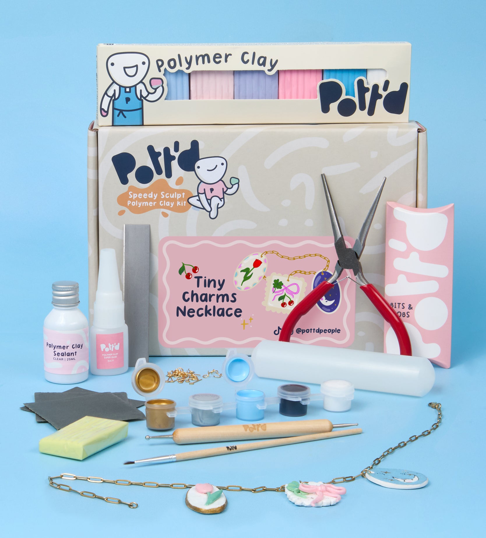 Get ready to sculpt, shape, and style your very own Tiny Charms Necklace. This kit lets you design a collection of adorable mini charms using polymer clay, then hang them on a gold necklace to create a piece that’s 100% you. Whether you’re crafting cute keepsakes, a personalised gift, or just having fun, this kit brings creativity right to your fingertips.