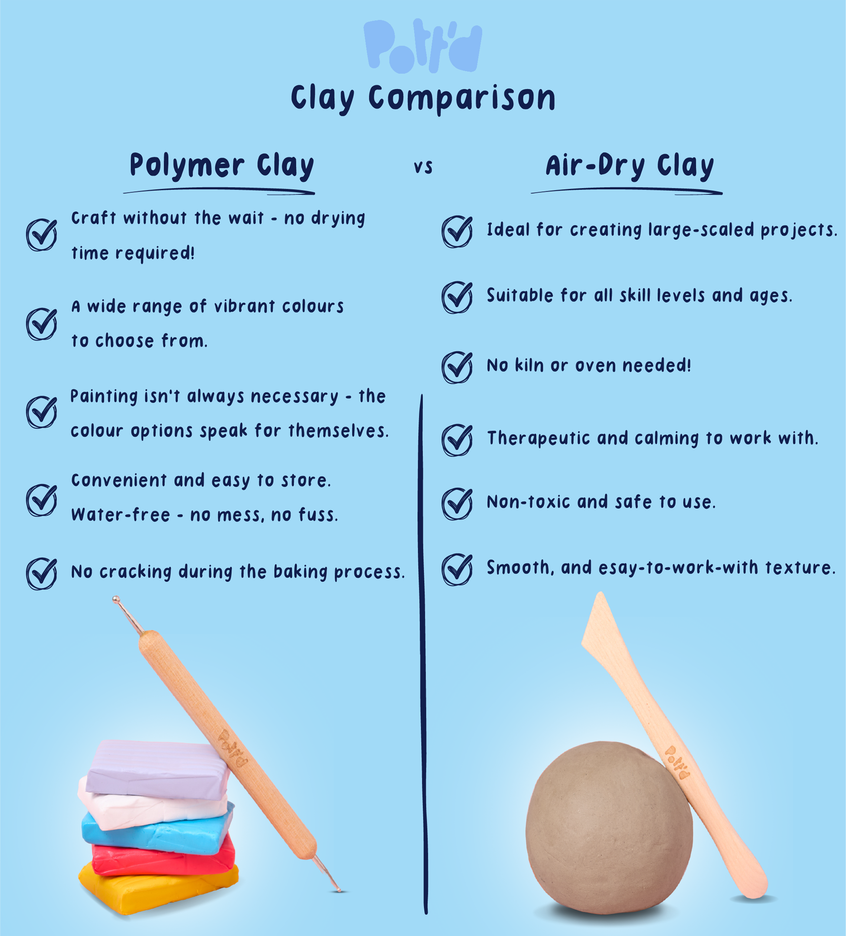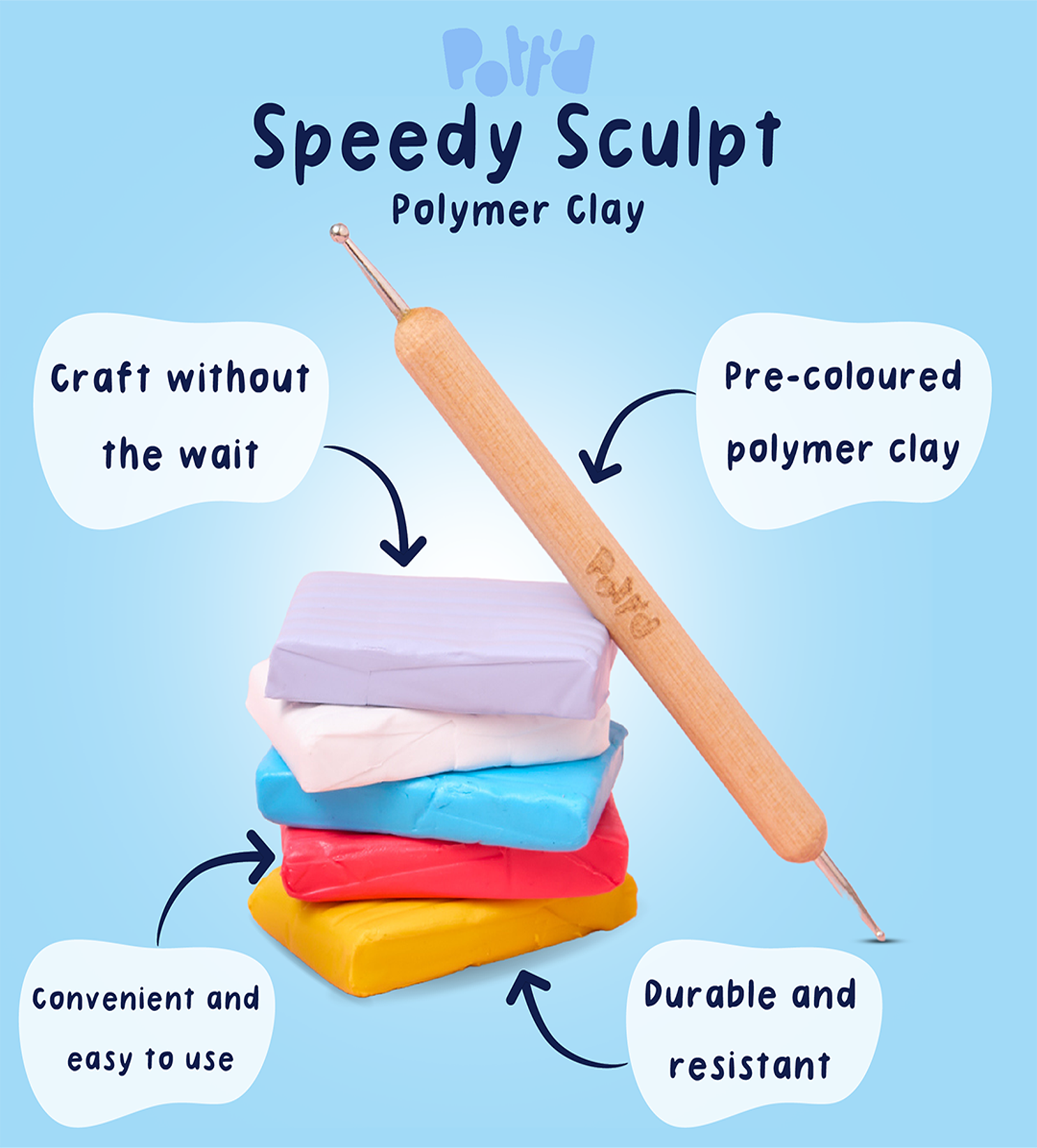 No water, no fuss! Polymer clay is easy to work with, simple to store, and ready to go whenever creativity strikes.