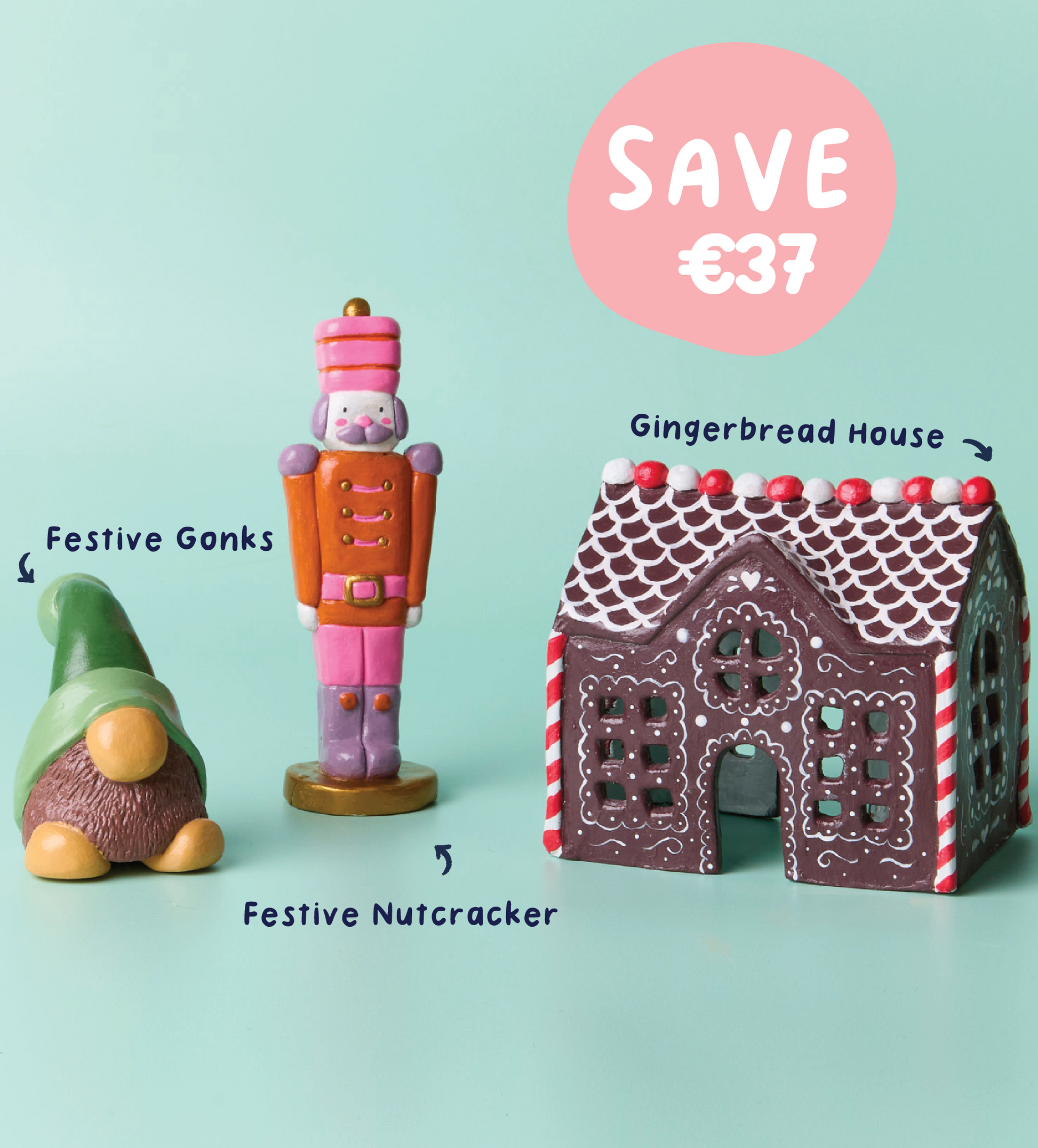 Haz que estas fiestas sean súper especiales con el Mini Kit Pack de Navidad de Pott'd, un divertido trío de proyectos festivos, perfecto para noches acogedoras o una divertida tarde en familia. Desde el cálido brillo de tu Vela Casa de Pan de Jengibre hasta el encantador toque de tu propio Cascanueces Festivo, este pack lleva la creatividad y diversión a tu hogar.