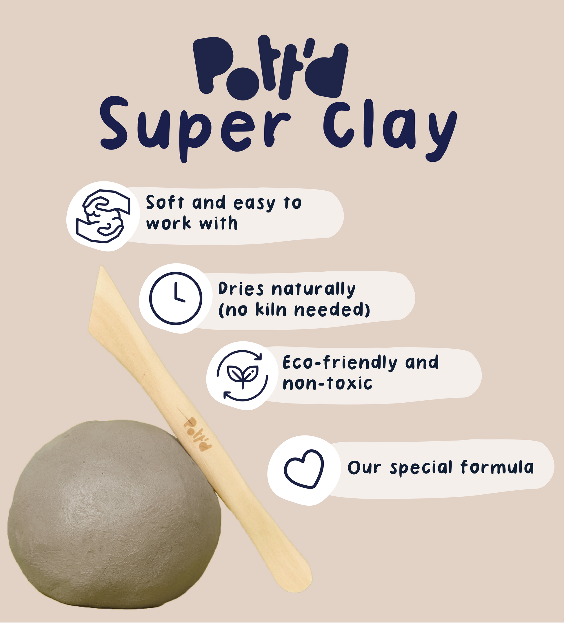 Onze kits gebruiken 90% gerecycleerde en recycleerbare materialen, en onze Super Clay is veganistisch en diervriendelijk. Alle materialen zijn volledig niet-toxisch, zowel voor u als voor de planeet.