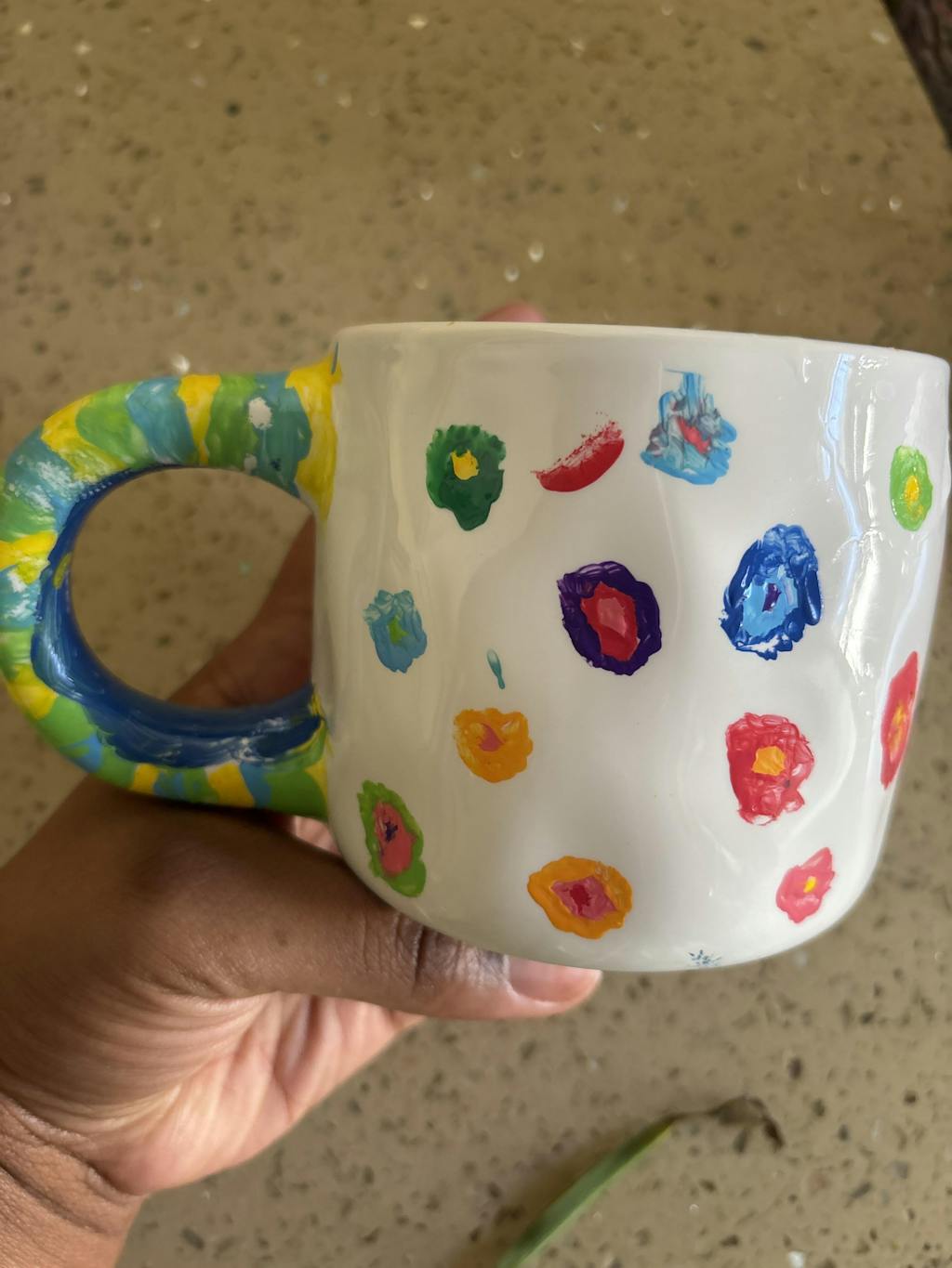 The mugs are nicely made. I will say that I wish the were made with a smooth surface instead of textured. They’re indented. But the paint worked beautifully and I use the mug everyday!