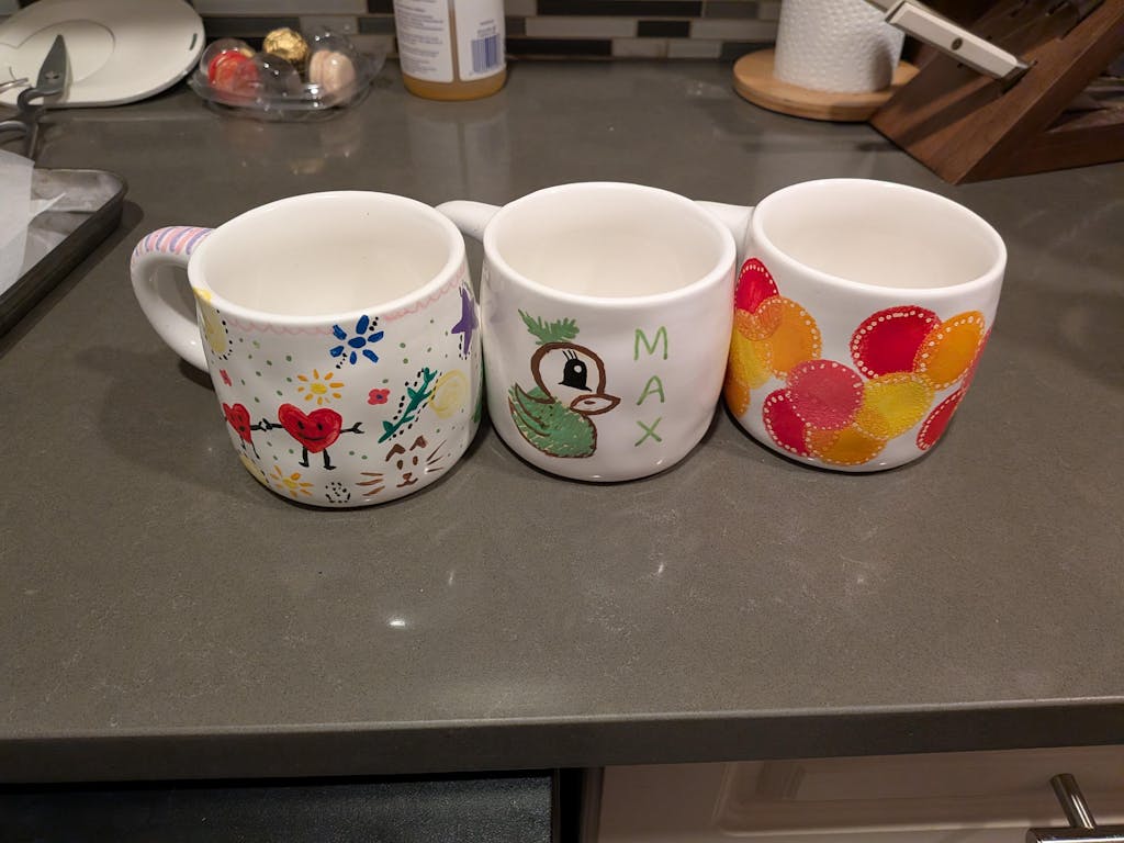 My girlfriend and I had a great time painting our mugs for Valentine’s Day, but the color options left a bit to be desired. There was more than enough pastel colors, but very little darker colors which left it a little difficult to paint the whole mug. We made do, but it was a very enjoyable experience and we love our mugs! I recommend this product, but suggest getting the extra paints.