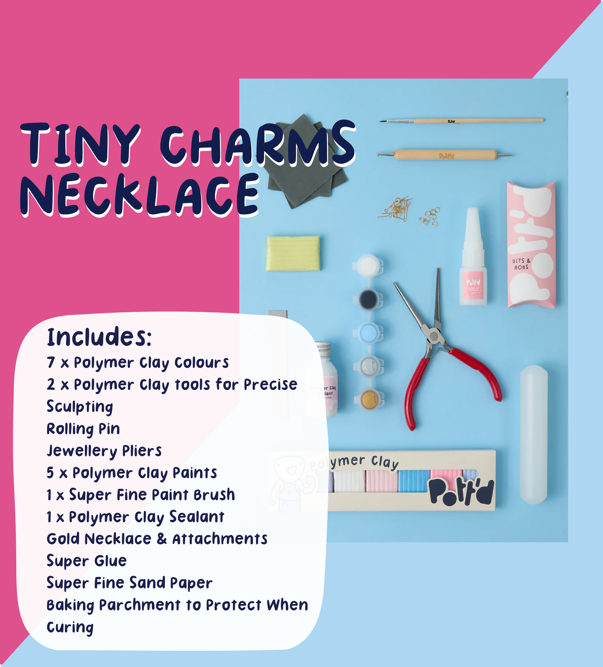 🌟 Tiny Charms Necklace – Create a dainty charm necklace with intricate polymer clay details, complete with a gold necklace and attachments for a beautifully finished piece.